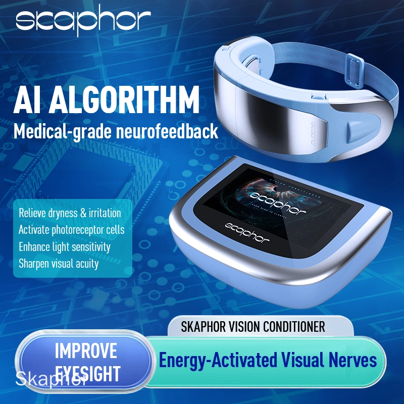 The Skaphor Vision Revival Device is a revolutionary adjustable drive eye therapy device that uses advanced 0-100 Hz bio-optical signals to naturally enhance visual acuity, relieve dry eyes, and reduce eye strain.