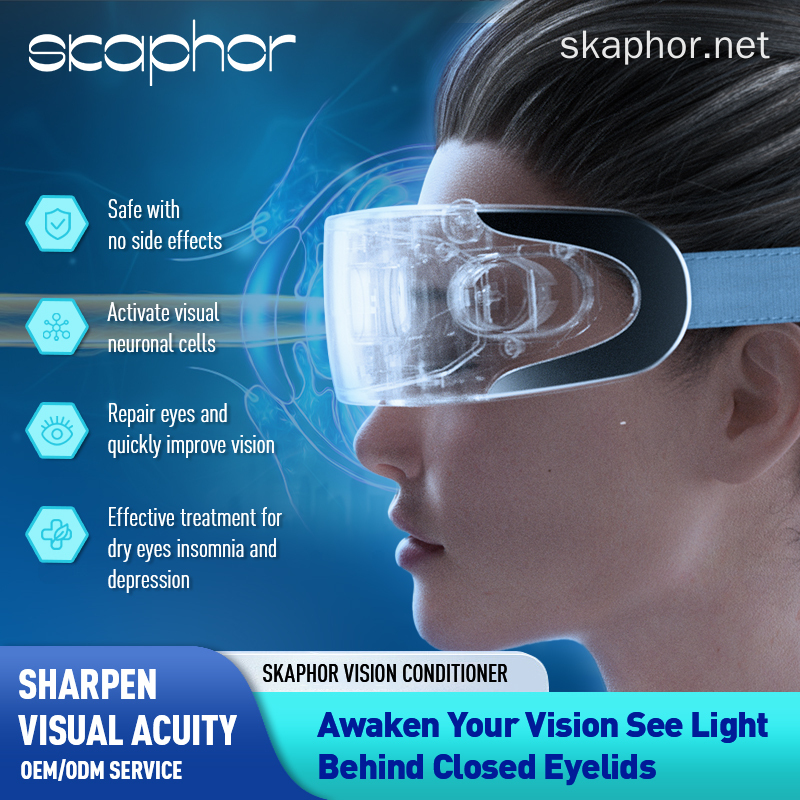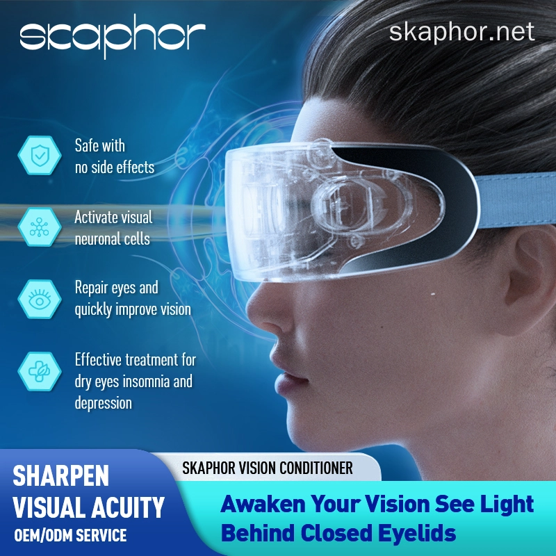 The Skaphor Vision Revival Device is a revolutionary adjustable drive eye therapy device that uses advanced 0-100 Hz bio-optical signals to naturally enhance visual acuity, relieve dry eyes, and reduce eye strain.